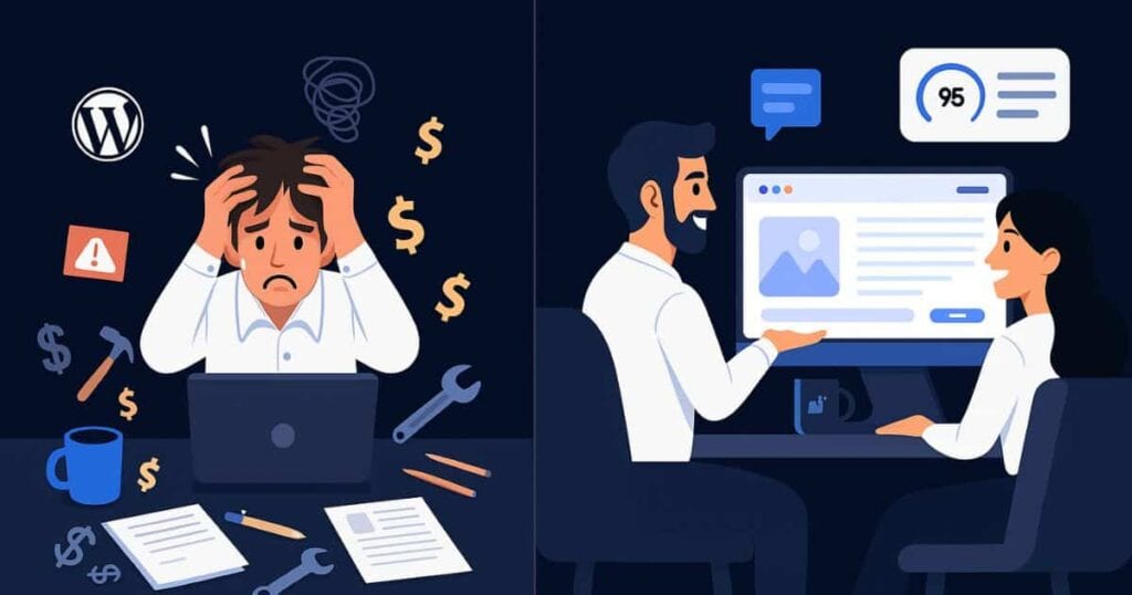 DIY website builders (like Wix, Squarespace, or even WordPress with templates) look affordable. But what seems cheap at first can end up costing you more in time, performance, and missed opportunities.